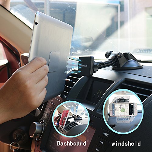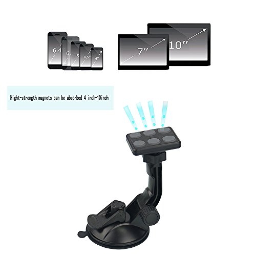 - 3)360 Degree swivel ball head joint enables your cell phone to rotate at any position to give you a good view while drive. and Sturdy Arm Can be 190 degree adjusted,no block of your sight when driving.Magnetic car dashboard sucker tablet computer stand is on car under car Easy to install and remove the tablet
