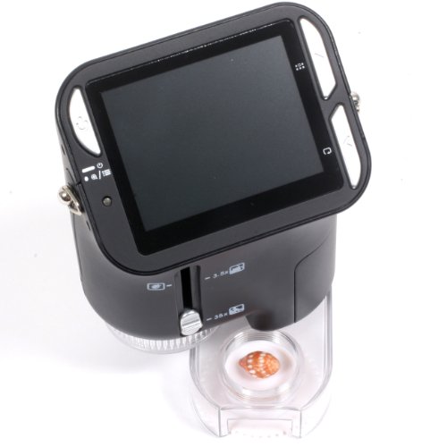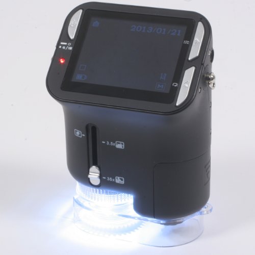 商品コード:XX00-2038 JANコード/ISBNコード:4560182803012 【限定大特価】光学35倍!EXEMODE 液晶付きデジタル顕微鏡 デジタルマイクロスコープ DMS-130 手のひらサイズの電子顕微鏡でミクロな世界を探検! W73×D54.5×H96.5mm、重さ96gと持ち運びしやすいコンパクトサイズながらも、3.5倍から35倍までズームが可能。 電源は単三電池を使用しているので、屋内外問わず好きな場所でミクロな世界を探検することが出来ます。 見やすい2.4インチモニターで、対象を手軽に観察。 そして、 観察したものを静止画&動画で記録! 内蔵メモリ32MBにSDカードスロットも搭載しているから、パソコンがなくてもダイレクトに保存可能です。 保存した静止画&動画は本体だけで再生できるのはもちろん、USBケーブルでパソコンと接続すればデータの取り込みも簡単です。 (注)液晶画面について 以下は液晶画面の特性によるもので、故障ではありません。 * ◎一部に常時点灯、または常時点灯しない画素が存在する場合があります。 * ◎明るさにむらが生じる場合があります。 * ◎太陽光、ライトなどが当たると画面が見えにくくなります。Feature