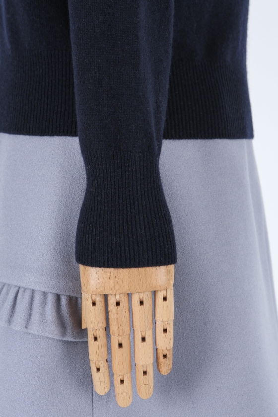 유니크하고 고급스러운 스타일로, 아우터의 포인트 이너로도 활용하기 좋은 스타일입니다.
