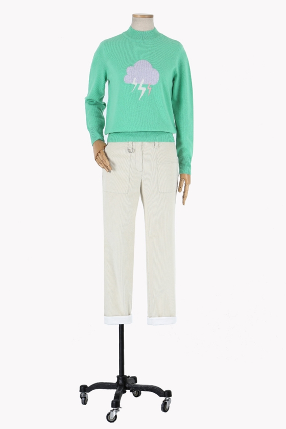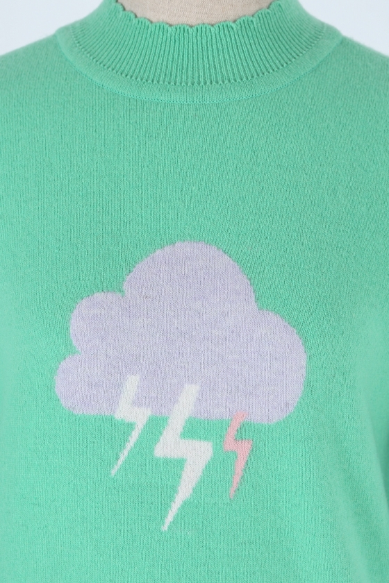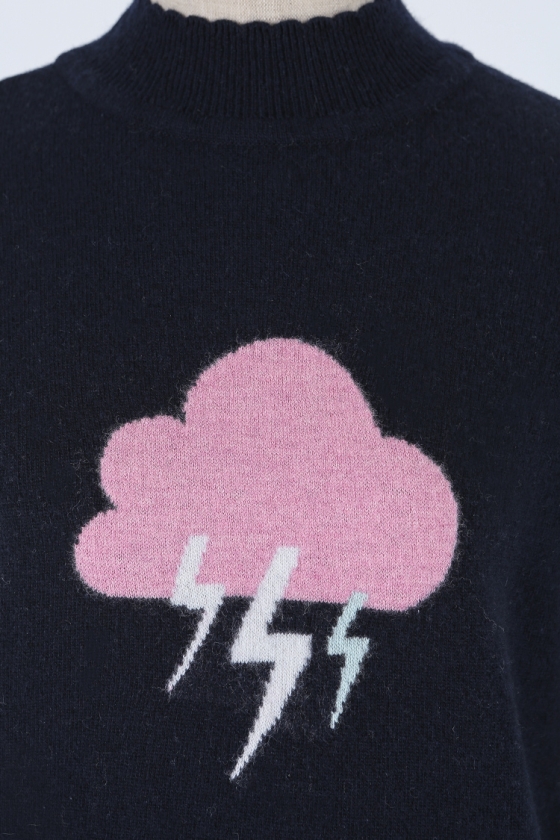 구름과 번개 프린트를 컬러감있는 니트짜임으로 표현한 니트 풀오버입니다.
