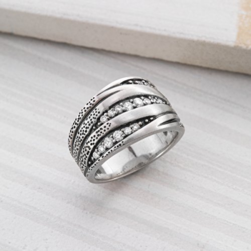 -. Feature : Gleaming Cubic Zirconia collect atop this sterling silver ring that shimmers with abundant sparkle / ENDLESS DREAM: If you could dream in jewelry, this would be it! Floral and scrolling patterns inspire this jewelry crafted with pearls, Swarovski crystal and sterling silver. Give your ensemble a touch of elegance and romance with a jewel like this, whether it's a delicate sterling silver necklace, ring, strand of white pearls or a mix of all three. Wear one of these dreamy jewels to channel your feminine side and accessorize your most romantic ensemble. / AGATE: Creatively striped by nature, each stone is guaranteed to be one-of-a-kind; STERLING SILVER: Silpada's signature metal is known amongst jewelry wearers for its strength, brightness, and shine / STERLING SILVER: Silpada's signature metal is known amongst jewelry wearers for its strength, brightness, shine, and decreased risks of allergic reactions and tarnish residue on skin / Ring face measures 9/16 inches in width