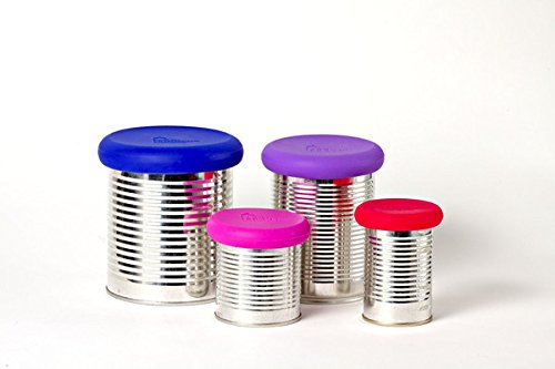 Set of four nesting silicone food savers. Food Huggers create a tight seal by wrapping around your leftover fruits and veggies. Just pop your fruit or veggie into the closest sized Hugger and save it for later. Food Huggers are also great for covering open cans and jars to keep contents fresh.