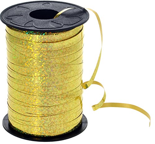 HIART Holographic Curling Ribbon, 3/16" by 500 yd, Metallic Gold