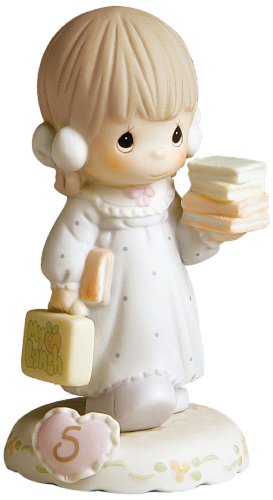 Precious Moments Brunette Girl with Lunch Box and Books Age 5 Figurine