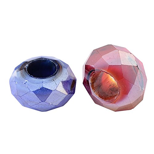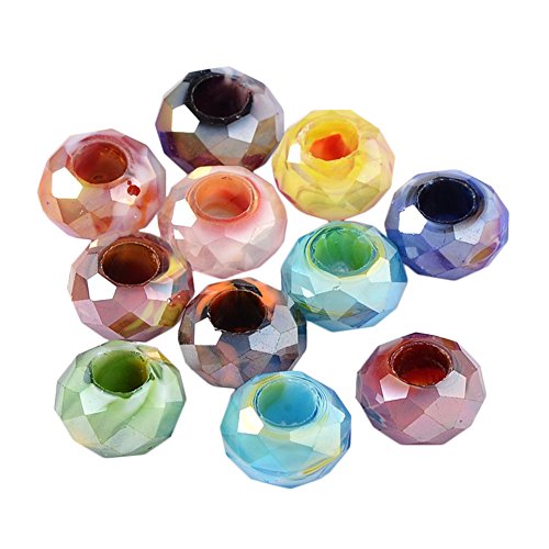 Pandahall 100pcs Glass European Beads, Large Hole Beads, Round Faceted Rondelle, Mixed Color, 14mm in Diameter, 8mm Thick, Hole: 5mm