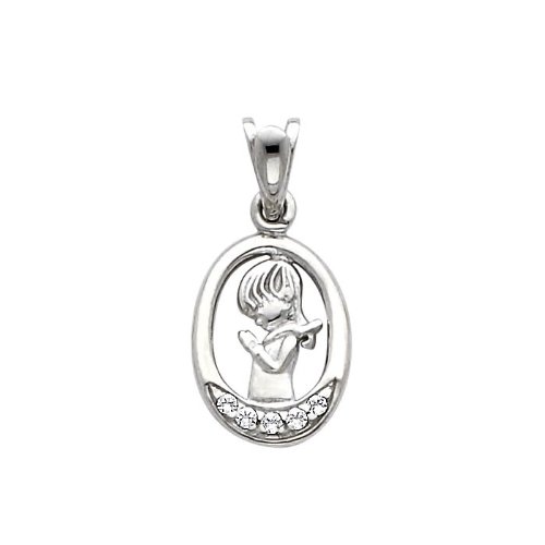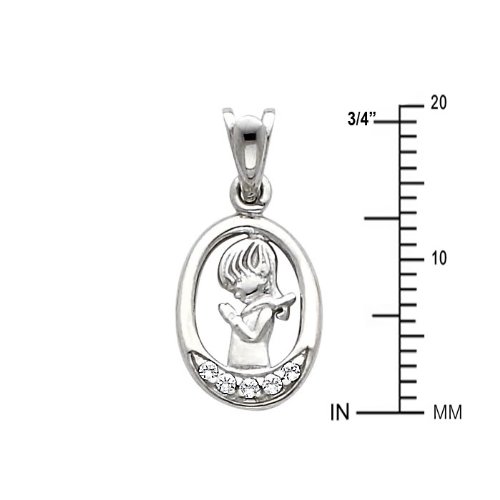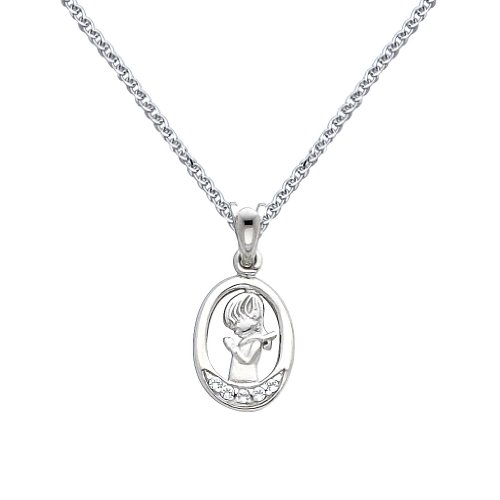 -. Binding : Jewelry -. Brand : The World Jewelry Center -. Color : Gold -. Department : girls -. Feature : Pendant Size : 15 mm x 10 mm / Guaranteed 14k Real Gold and "14k" Stamped / NO gold plated or filled / "NO Question Asked" 30-day Return Policy. / Promptly Packaged with Free Gift Box -. ProductGroup : Jewelry -. ProductTypeName : FASHIONNECKLACEBRACELETANKLET -. Title : 14k White Gold CZ Prayer Pendant with 1.3mm Flat Open Wheat Chain Necklace