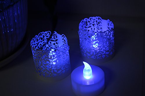 *Note:12 x LED candle tea lights in White Candle Body and Blue lights, provides realistic Blue flickering effect