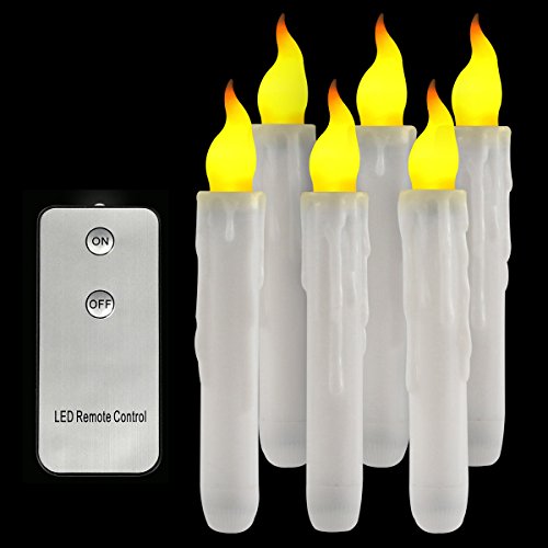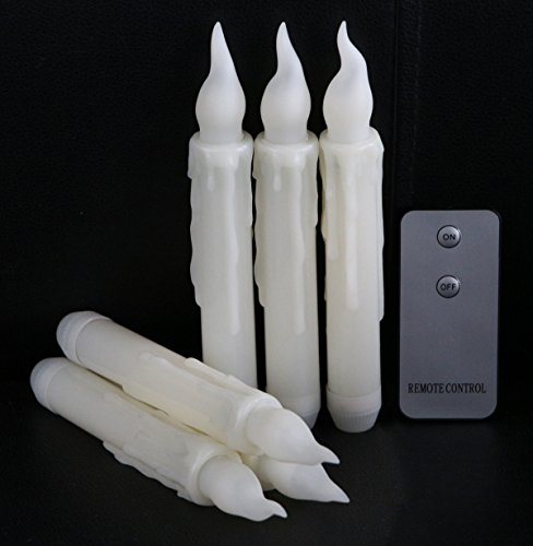 LifeGenius Set of 6 Wax Dripped Unscented LED Flameless Taper Candles Remote Control Flickering Amber Yellow Electric Lights For Home Decoration (Batteries Not Included)