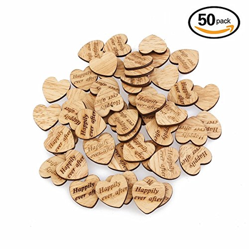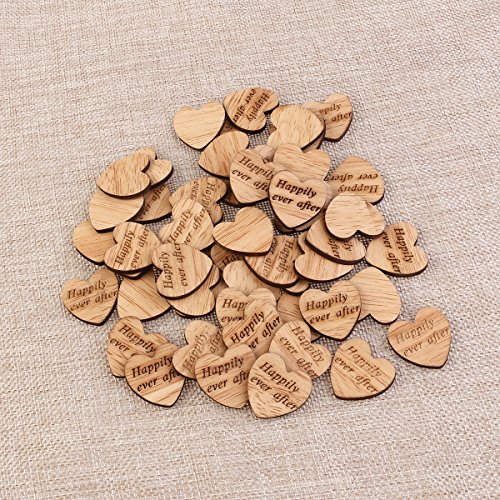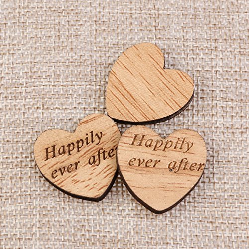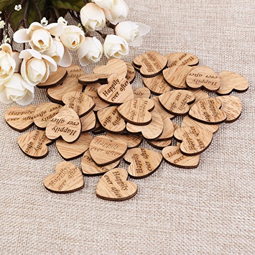 ULTNICE 50pcs Wooden Heart Shaped Log Slices Crafts with Happily Ever After Pattern for Wedding Party Embellishment