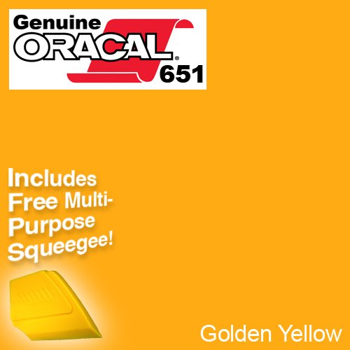 ORACAL 651 Multi-Colored Vinyl Solvent-Based Adhesive-Backed Calendared Wrap Decals w/ VViViD Yellow Multi-Purpose Squeegee (12" x 5ft, Golden Yellow)