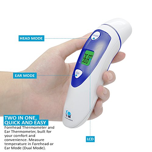 - TWO IN ONE, QUICK AND EASY - Forehead Thermometer and Ear Thermometer, built for your comfort and convenience. Provides fast clinical accurate instant temperature with the press of a button within a second. Measure temperature in Forehead or Ear Mode (Dual Mode). This top of the range thermometer is used by Pediatricians and at home by Parents and Individuals. This Digital Thermometer can be used as a Baby Thermometer or an Adult Thermometer