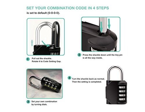 -. Title : Combination Lock, 4 Digit Combination Security Padlock for Gym, Sports, School Locker, Filing Cabinets, Outdoor, Fence, Case and Storage - Black