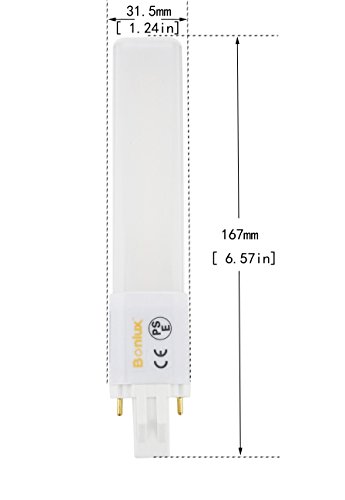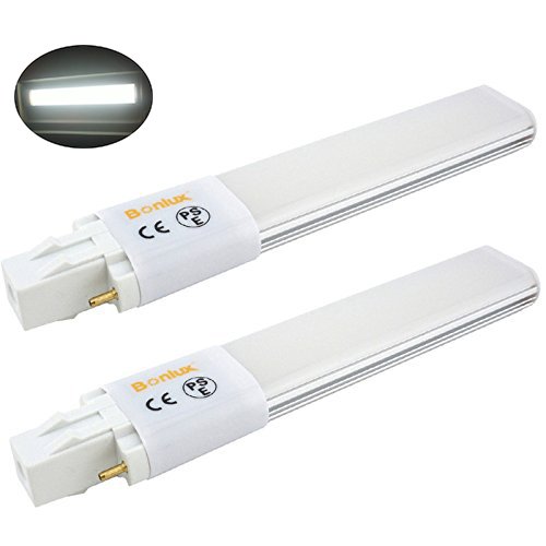 Bonlux 2-pack 6W GX23 2-Pin LED PL Retrofit Lamp 13W GX23d CFL Replacement 180° Beam Angle Daylight 6000k LED PL Horizontal Recessed Down Light Bulb (Remove/bypass the Ballast)