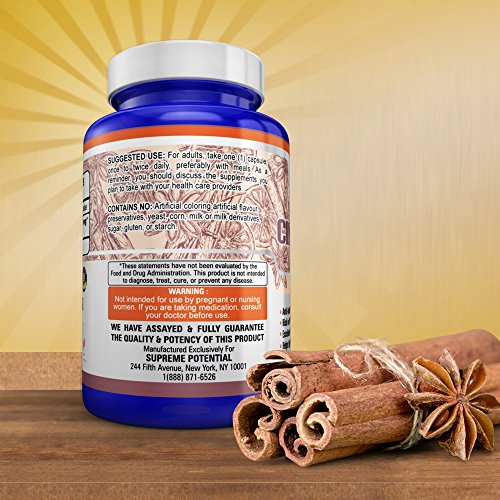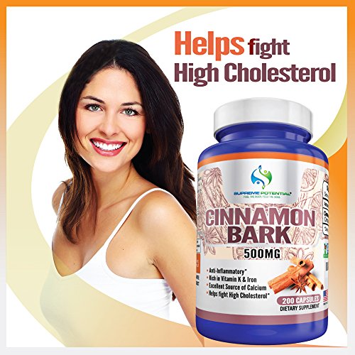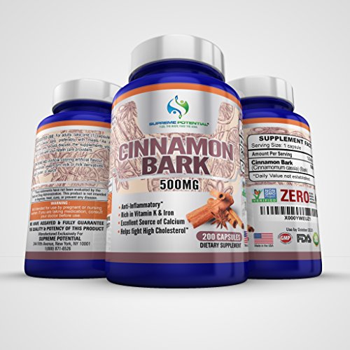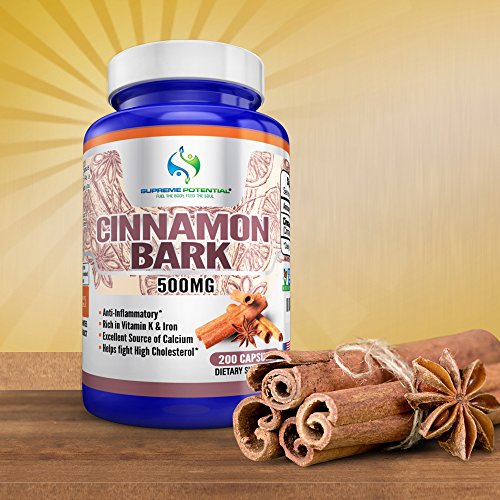 Supreme Potential 100% Pure Cinnamon Bark for Anti-Inflammation, Rich in Vitamin K and Iron - 500mg - 200 Capsules - 200 Day Supply -Manufactured...