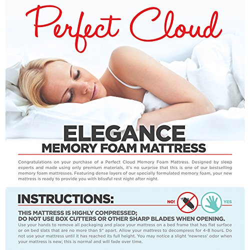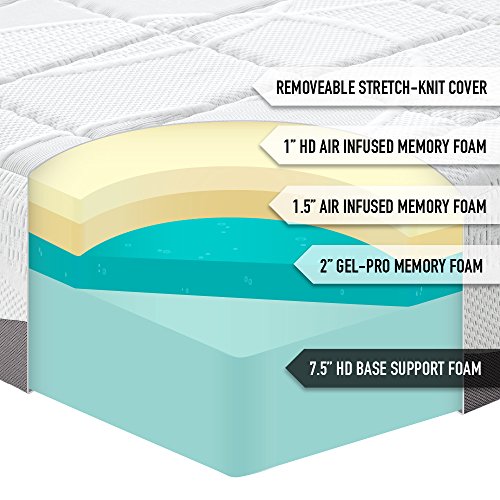 - Feature : EXTREME LUXURY - AMAZON EXCLUSIVE MATTRESS. The Perfect Cloud Elegance Gel-Pro Memory Foam Mattress pampers you with a thick top 1 inch layer of HD Air Infused Memory Foam on top of 1.5 inches of regular Air Infused Memory Foam. Our mattress meets the coveted Goldilocks standard of 'just right.' Just like a great hotel bed, nearly all sleepers will love it. / SLEEP COOL WITH GEL-PRO MEMORY FOAM. The third layer of our bed is comprised of a thick 2 inch layer of Gel-Pro Memory Foam - our most advanced gel-infused memory foam - which provides additional body conforming comfort while helping regulate your overall sleep temperature. Gel-Pro Memory Foam ensures comfortable rest night after night. / PERFECT SUPPORT FOR A WEIGHTLESS SLEEP EXPERIENCE. Our fourth layer is made up of 7.5 inches of HD Base Support Foam. This extra thick layer provides fine tuned support for a weightless sleep experience. / BEST-IN-CLASS PREMIUM REMOVABLE STRETCH KNIT COVER. Our best-in-class premium textile Stretch Knit Cover is fully removable for easy care and features our newest Mesh Gusset Air-Transfer Technology. This special mesh allows air to flow freely in and our of your mattress which keeps your mattress fresh and cool. The timeless design of this cover will match with any bed frame. / 25 YEAR WARRANTY - 100% GUARANTEE. Buy with confidence knowing that your new mattress is CertiPUR-US certified, designed in the USA and backed by our 25 year warranty. With outstanding Amazon customer service your purchase is risk-free.