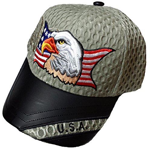 Product Description Gray, Bald Eagle Leather patriotic baseball cap. Unisex design to fit many men, some women with adjustable strap. Included with cap is a Genuine Buy Caps and Hats I Supported a Disabled Veteran-Owned Business Bumper Sticker. 0