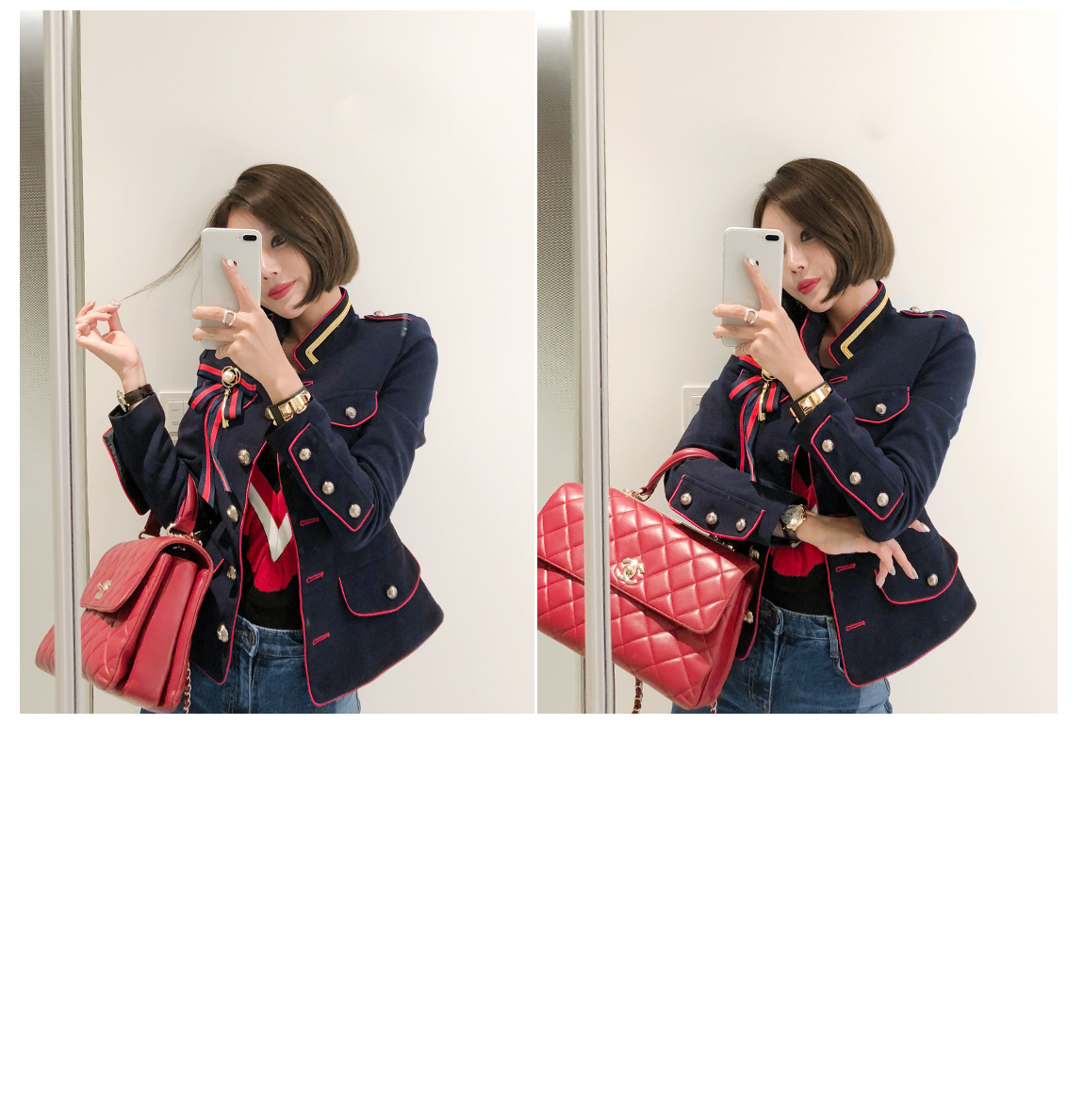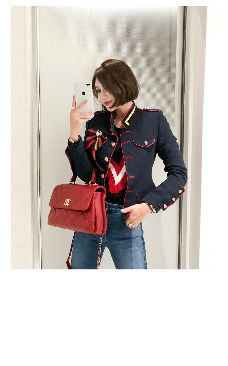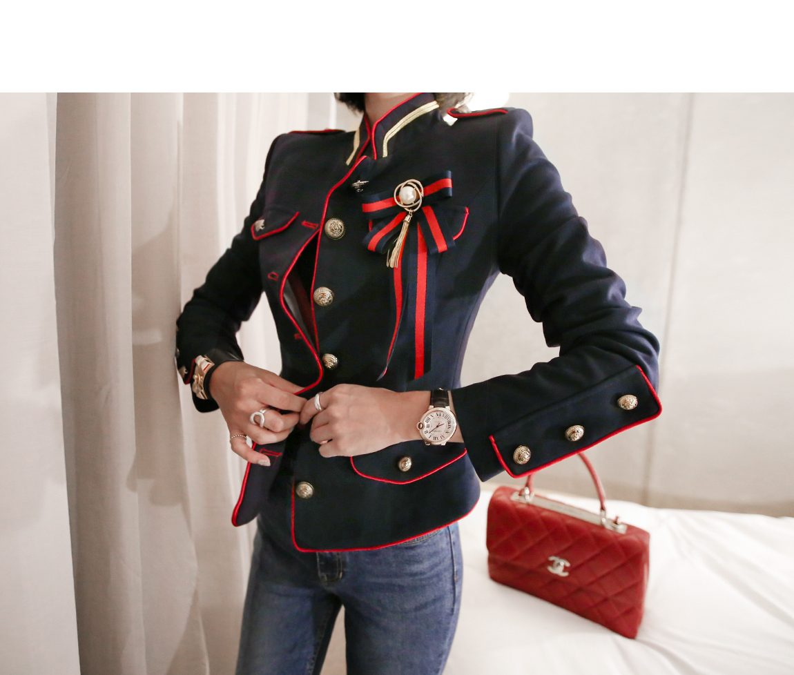 光沢感が増してきた配色アウトラインと金色のボタンで