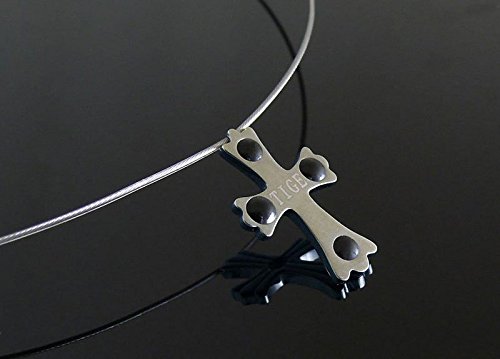 게르마늄 넥크리스 팔찌 외에 다이아몬드1포인트 탑재 게르마늄4석 크로스 티타늄 넥크리스 실버