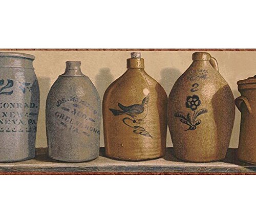 -. Title : Chesapeake PC95163B STONEWARE JUGS Decorative Wallpaper Border, Brown