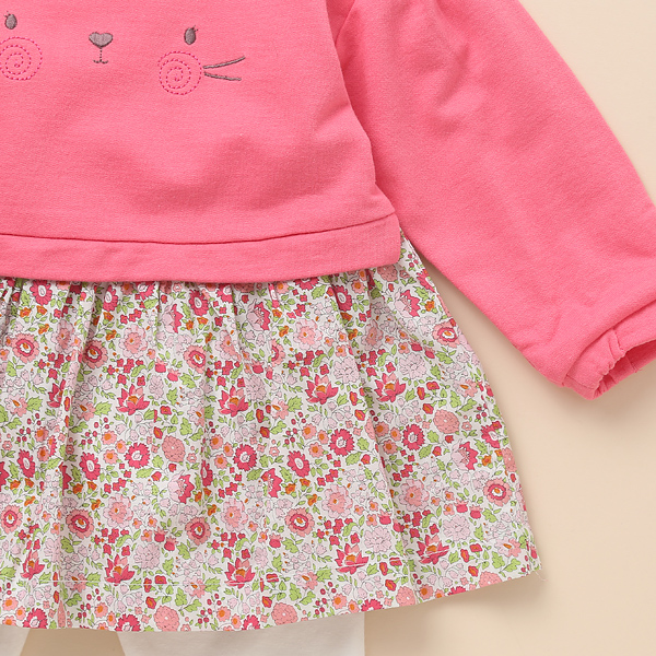 화사한 꽃나염지로 러블리함을 주며 가슴부분의 고양이 포인트가