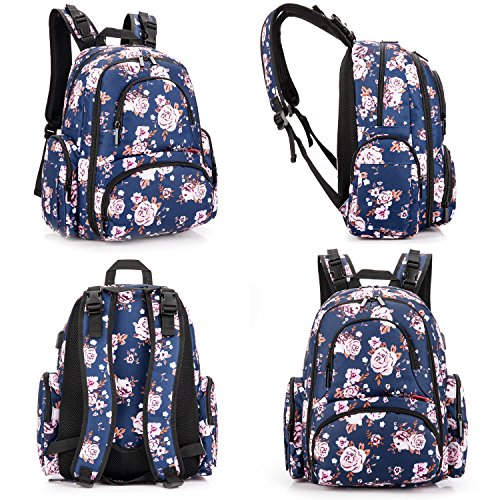 Bag dimensions: 17.3 x 13.3 x 7.4 inch. Volume: 26 L,16 pockets. Roomy enough for holding items you want to carry for baby.