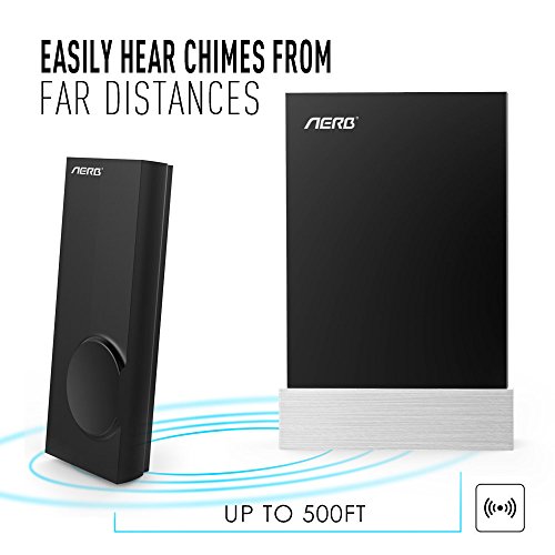 Aerb wireless door bell aims to provide a premium wireless doorbell and bring a whole new level of convenience to your daily life. Easy to know who is at your door, it's a great addition to your home. Specifications: Wireless Range: 500-600 ft /200m maximum in the OPEN AREA Tunes: 36 selectable options Volume: 4 level adjustable levels (50db to 80 db) Receiver Power: AC 110V ~ 220V 50Hz / 60Hz Transmitter Power: 1 x 12V Alkaline Type A23 battery Noted: The function of this wireless doorbell may be affected in the following situations. 1. Subjected to electromagnetic interference; 2. Mounted on top of the closed iron gate; 3. Shielding phenomenon; 4. Too wet weather; 5. Depleted battery. Realiable Warranty: We are confident with our quality that's why we offer ONE YEAR free manufacture warranty. What's Included: 1 * (Plug-in Chime) Receiver 1 * (Touch Activated) Transmitter 2 * Screws 1 * Double Faced Adhesive Tape 1 * User ManualFeature