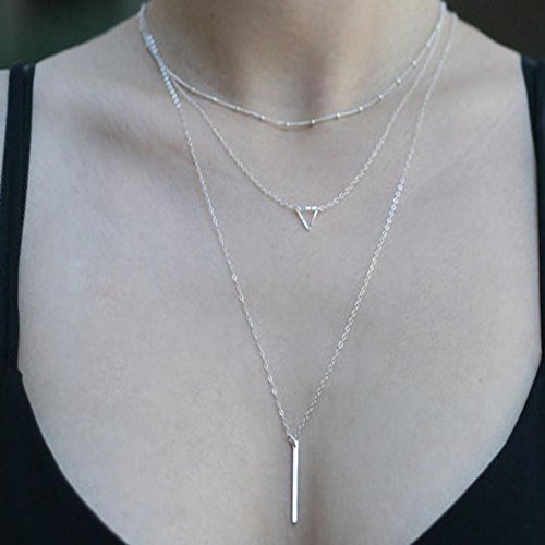 FXmimior Layered Necklace 3 Tier Pendant Multi-layer Chain Long Chain Accessories for Girl Women (2)