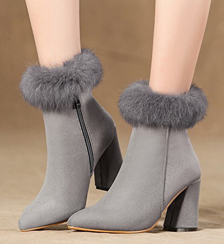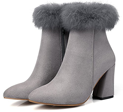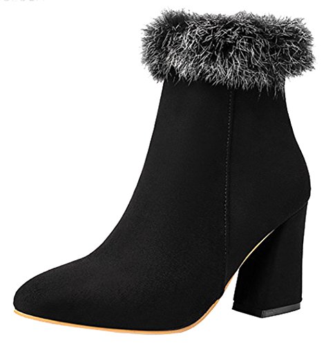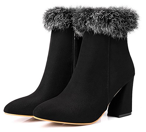 Binding : Apparel Product Description Winter is coming! Do you want a pair of boots both of fashion and warmth? This pair of snow boots is a perfect choice. This lovely shoes features zip up closure and round toe. The faux fur lined will warm you all winter. The heels measure 3.1 inch. You will feel comfy in their block heels. The ankle high and slouchy fluffy fur will keep you warm. The sole is made of good rubber. You will feel comfy in their soft bottom. They are of high quality and durable. Just pick them to show your beauty. 0