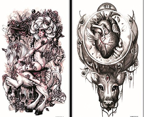 GGSELL GGSELL waterproof and non toxic 2pcs temporary tattoos in one package, it's including devil,angels with horse,heart with head temporary tattoos
