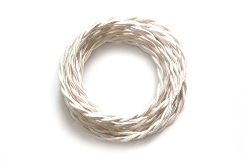 Vintage Twisted Cloth Fabric Covered Rayon Lamp Cord, WHITE - 15Ft, 18-2 Wire for Making and Refurbishing Lamps and Lighting