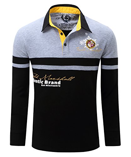 T Shirts, Cokle Mens Long Sleeve Tee Lapel Casual Fit Polo Grey XXL