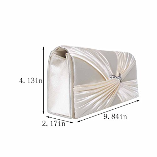-. Feature : UNIQUE DESIGN: This clutch purse is made of high quality satin, chic and noble / DIMENSION: 9.84 (L) * 4.13 (W)* 2.17 (H) Inch; This big capacity clutch purse can fit everything you need (smartphone, a few bobby pins, eyeglass, makeup products) / SAFE CLOSURE: Flap with magnetic snap closure, AVOID YOUR BELONGINGS SLIPING / CARRYING OPTIONS: You can hold this clutch purse IN YOUR HAND or you can also use it as a SHOULDER BAG or CROSS BODY BAG with the chains coming with the bag (detachable strap is 46.49 inch ) / OCCASIONS: Great for wedding, party, prom, fancy events. Just get this clutch purse to have a wonderful night