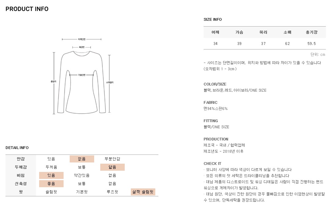 적당히 얇은 두꼐감의 원단으로 여름에도 시원하게 착용가능하고