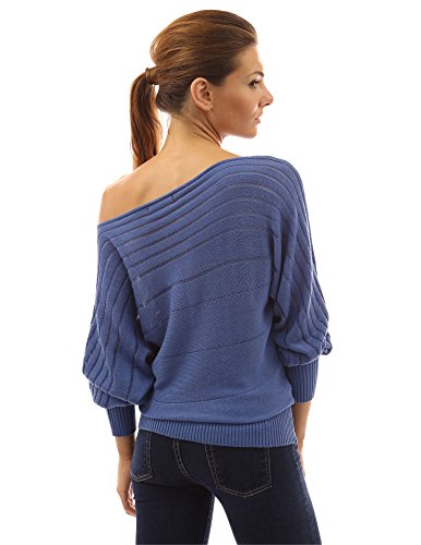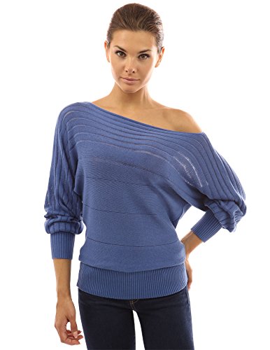 Cotton Blend Boat Neck Semi-fitted Ribbed Casual Pullover Sweater. Fabric is semi-sheer. It features on / off one shoulder and batwing long sleeves. Model in pictures is 5 feet 8 inches (173cm) tall wearing size S