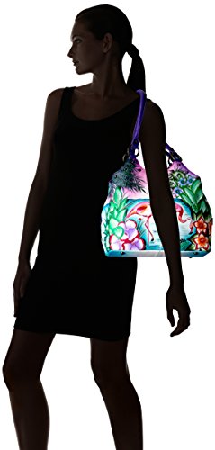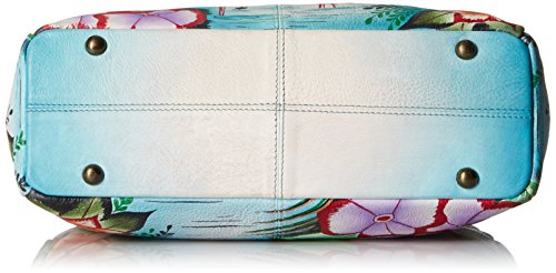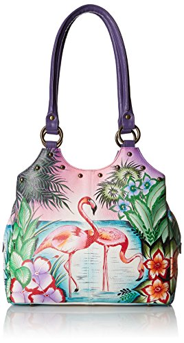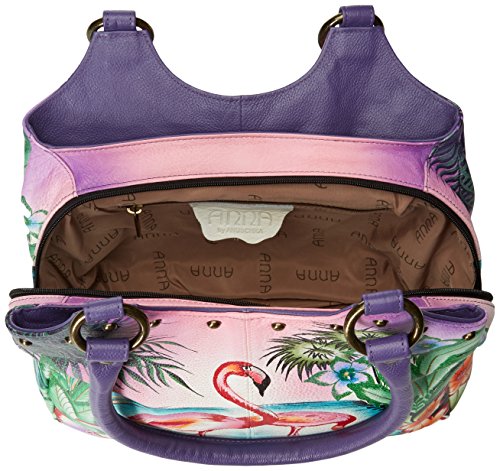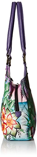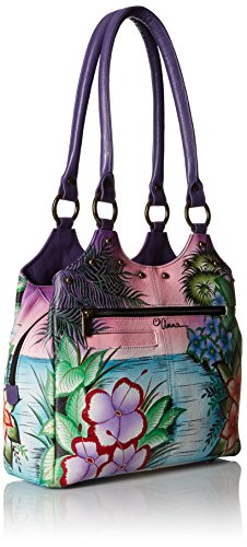 Top extended zip entry to central compartment. Inside zippered wall pocket, cell and multipurpose pocket. Two full length outer compartments with magnetic closure. Rear has zippered pocket. Double handle with handle drop of 12”.12” x 10” x 4”