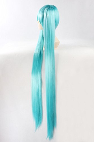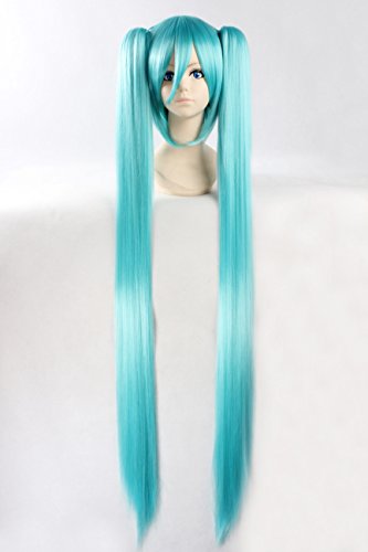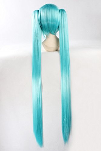 abHair Hatsune Miku-Vocaloid Inspired Wig Straight Long 2 Ponytails Cosplay Anime Wig Ice Blue