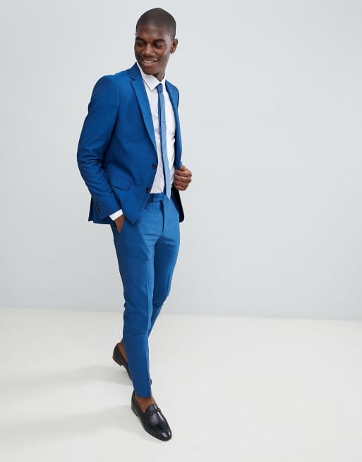 Moss London Skinny Suit Pants In Blue