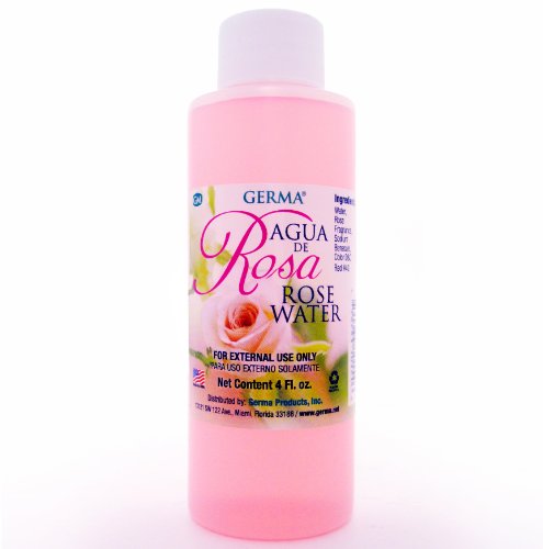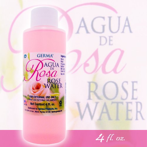 -. Binding : Misc. -. Brand : Germa -. EAN : 0790933101546 -. Feature : Rose Water (Agua de Rosas) / FOR EXTERNAL USE ONLY. / 4 Fl. Oz. / MADE IN USA -. ProductGroup : Beauty -. ProductTypeName : BEAUTY -. Title : ROSE WATER Agua de Rosas Flower Water Skin Face Facial toner Cleanser 4 Fl. Oz. -. UPC : 790933101546