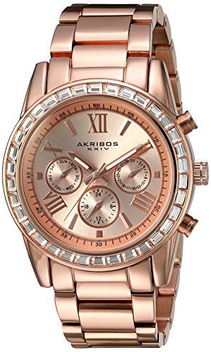 -. Title : Akribos XXIV Women's Swiss Quartz Swarovski Crystal Bezel With Rose-Tone Dial on Rose-Tone Stainless Steel Bracelet Watch AK943RG
