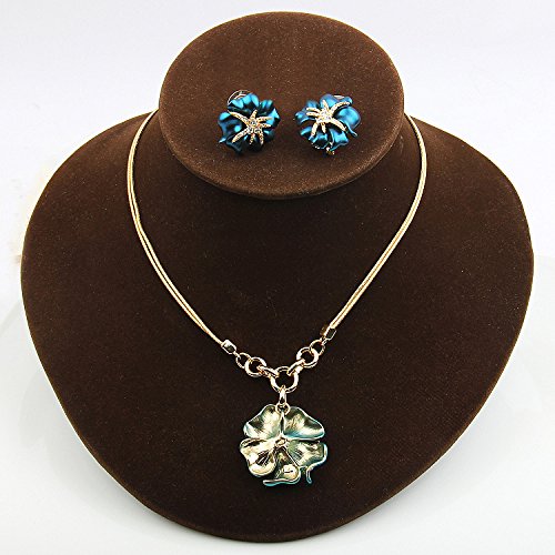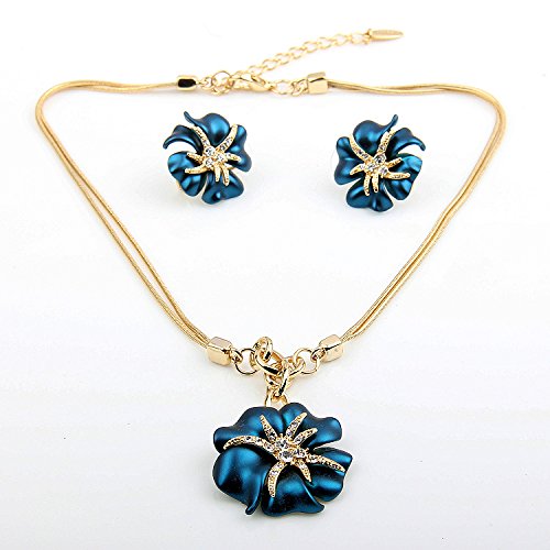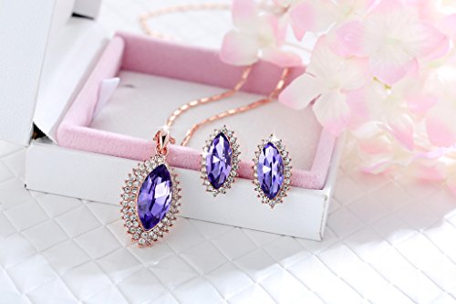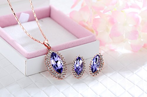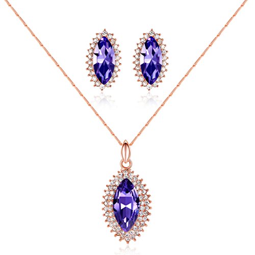-. Title : Kemstone Vintage Blue Rhinestone Necklace Earrings Rose Gold Color Jewelry Sets for Women Brides,17.5"