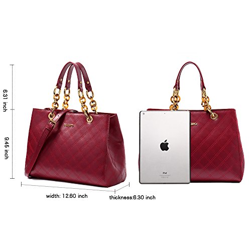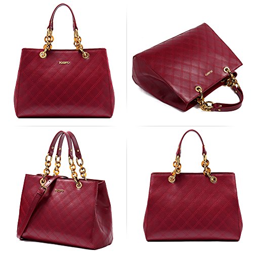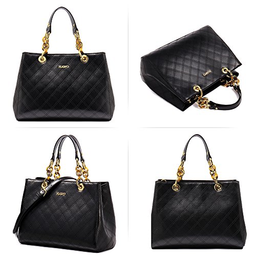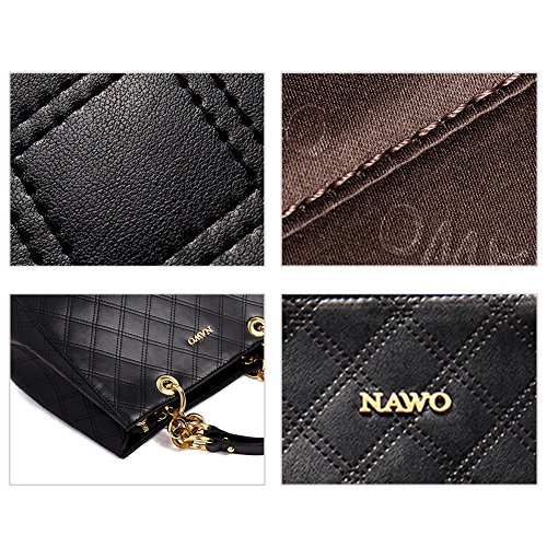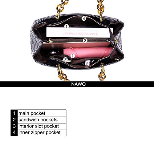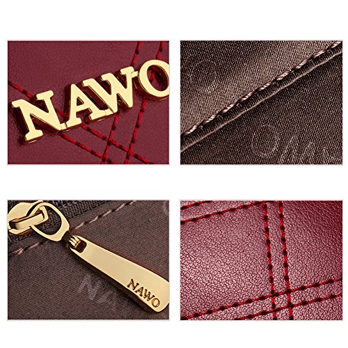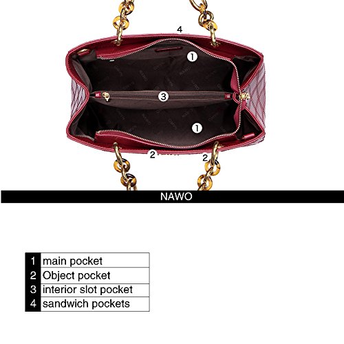 -. Feature : [EXQUISITE MATERIALS] Texture Synthetic Leather+Split Leather & Fabric Lining, Hand made by professional artisans.Modern light gold hardware. Metal accessories have been polished, designed to be durable and wear-resistant. / [DIMENSIONS] (L) 12.59" x (W) 9.25" x (H) 6.1" inch / (L)32 x (W)23.5 x (H)15.5 cm / [INTERNAL STRUCTURE] This leather handbag contains 2 main pocket + 2 sandwich pockets + 1 hide zipper pocket + 1 compartment zippered pocket. Large capacity designed, this bag comfortably holds a triple folding umbrella, iPhone7s Plus, wallet, cosmetic, and other daily things. / [FASHION FOCUS] We have 2 colors, all kind of colors are beautiful and stylish, you can choose any color you like. Hand made by professional artisans. Clear fashion texture, with simple styling, the handbag appearance concise and atmosphere, powerful at the same time. Fully lined interior includes inside pocket, detail stitching matches the bag color. / [ATTENTIONS] NAWO is an US Registered Trademark and our ONLY Authorized dealer is NAWO. Please pay attention to avoid purchasing those COUNTERFEITS from other sellers, 100% genuine guarantee from NAWO. Unauthorized sale without permission,we will investigated for legal responsibility.