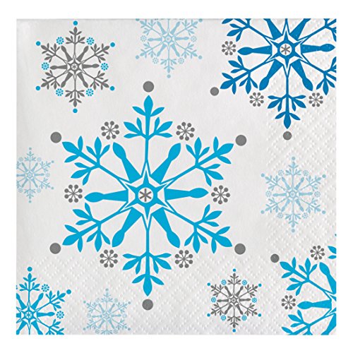 Creative Converting 317147 16 Count Paper Beverage Napkins, Snowflake Swirls