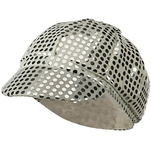 -. Title : Women's Silver Sequined Newsboy Cabbie Costume Hat