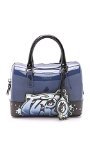 A rubber Furla satchel, revamped with graffiti-style accents. The top zip opens to the unlined interior. Rolled handles. Dust bag included.