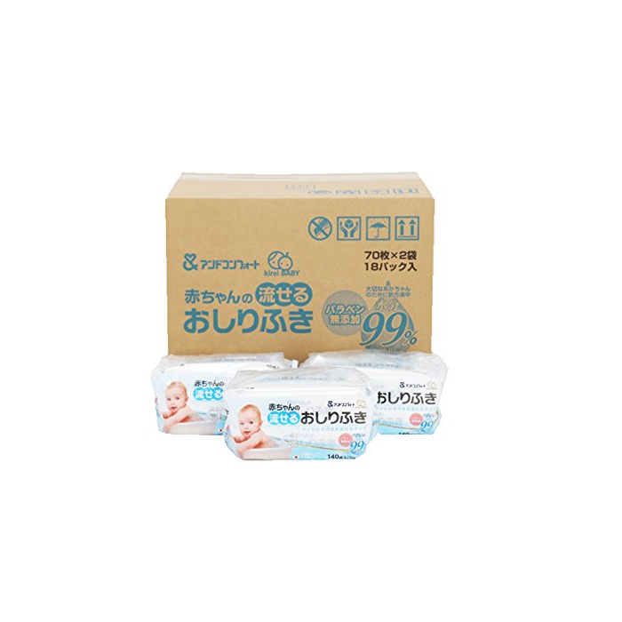 원본상품명: 【ケ?ス販?】 アンドコンフォ?ト 流せる赤ちゃんのおしりふき (70枚×2個入)×18パック入