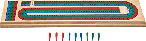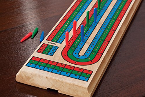 Studio : Mainstreet Classics by GLD Products Publisher : Mainstreet Classics by GLD Products Binding : Sports Product Description The Mainstreet Classics Traditional Wooden Cribbage Board Game Set is the perfect game board for the road or at home. The board has three tracks which can handle three players at one time. Cribbage requires a deck of cards which is not included. However, we have included a rudimentary cribbage instructions booklet for learners or people looking for clarification of rules. The Mainstreet Classics Traditional Wooden Cribbage Board Game Set is designed with a common "winning hole" for the first-place finishing player. It also features a scoring area to keep track of wins when competing in multiple games. Included with the set are nine colored pegs (three red, three blue, and three green) and a slotted channel on the underside of the board for peg storage. Board’s dimensions: 14-3/4" L x 3-1/4" W x 5/8" D, cards not included. 0