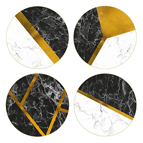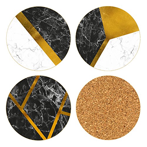 -. Feature : PREMIUM UNIQUE DESIGN - Certain to be admired by guests and add a refined touch to any home our SET of 4 Coasters are made from absorbent natural ceramic stone with 4-inch diameter. / MAXIMUM ABSORBENCY - The coaster can gradually absorb water drops falling down from the surface of the cup, keeping the cup bottom and the tabletop stay dry. / DESIGNER TABLEWARE - use it as decorative objects around the house such as candle holders, spoon and chopsticks rest or to serve drinks in style at a fancy dinner. / PROTECT TABLE SURFACE - Our coasters were specially designed with soft cork on the back that can not only protect the table from scratches but also provide additional gripping. / PREMIUM PACKAGING - Keeping the same unique design we created an elegant packaging so you can use it for a perfect gift idea for Thanksgiving, Christmas, Housewarming or Birthdays.