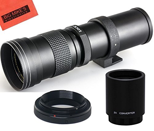 -. Feature : Works with the Canon Digital EOS Rebel T1i, T2i, T3, T3i, T4i, T5, T5i, T6i, T6s, SL1, EOS60D, EOS70D, 50D, 40D, 30D, EOS 5D, EOS1D, EOS5D III, EOS 5Ds, EOS 6D, EOS 7D, EOS 7D Mark II / High-power 420MM-800MM telephoto focal length / Includes T-mount adapter for digital and 35mm Canon EOS SLR cameras / High index, low-dispersion multi-coated optical glass to reduce flare / 2X Teleconverter doubles the power of your lens to 1600mm