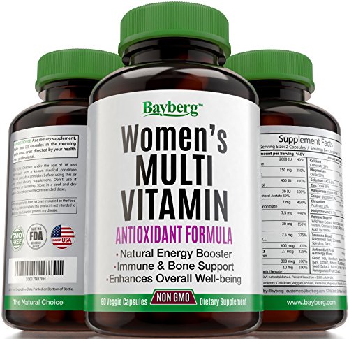 -. Feature : 100% SATISFACTION GUARANTEED or your money back!. MOST EFFECTIVE FORMULA AVAILABLE / MADE in USA. NON-GMO and GLUTEN FREE!. No hormones, no antibiotics, no preservatives, no artificial ingredients or flavors. NO SIDE EFFECTS. Made in a GMP-Certified and FDA-Approved facility. / Advanced Daily Multivitamin & Minerals for Women's Overall Health with Antioxidants. / Energizers & B-Vitamin Complex. Special Blend for Female Support. Vitamins and minerals are essential nutrients. Bayberg Formula Promotes Potent nutrition and protection for Bones, Heart, Eyes and Immune System. Provides Mental & Physical Energy and helps heal wounds. Fruit Multivitamin, Special Selection. / Antioxidants are an essential part of optimal health. They can repair damaged molecules and increase your natural defenses. Antioxidants also have an immense effect on your skin's health, controlling how fast you age by fighting free radicals.