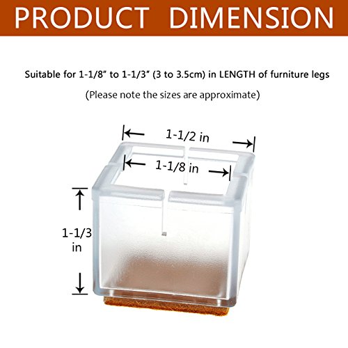 Product size: Suitable for 1-1/8” to 1-1/3” in LENGTH of furniture legs ( Please note the sizes are approximate ).